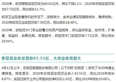近來,定制家居行業(yè)九大企業(yè)陸續(xù)發(fā)布2020年年度報告,到底情況如何?不妨一起來看看!